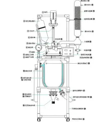 11-12、循環液夾層:通過連接低溫冷卻液循環泵、高低溫一體機等可以提供低溫或高溫循環液體的設備,為釜體內部的實驗物料進行加熱或冷卻。
