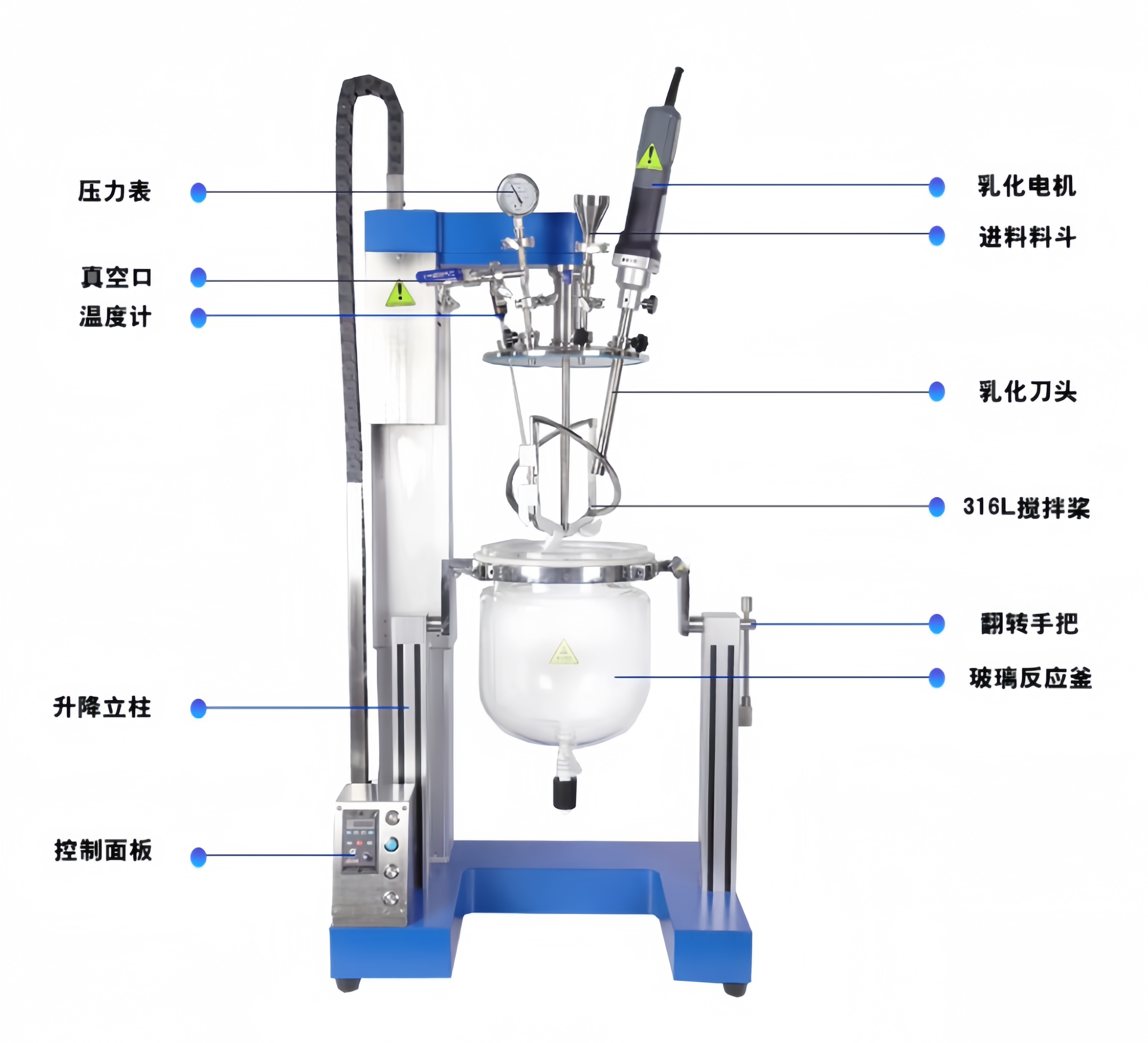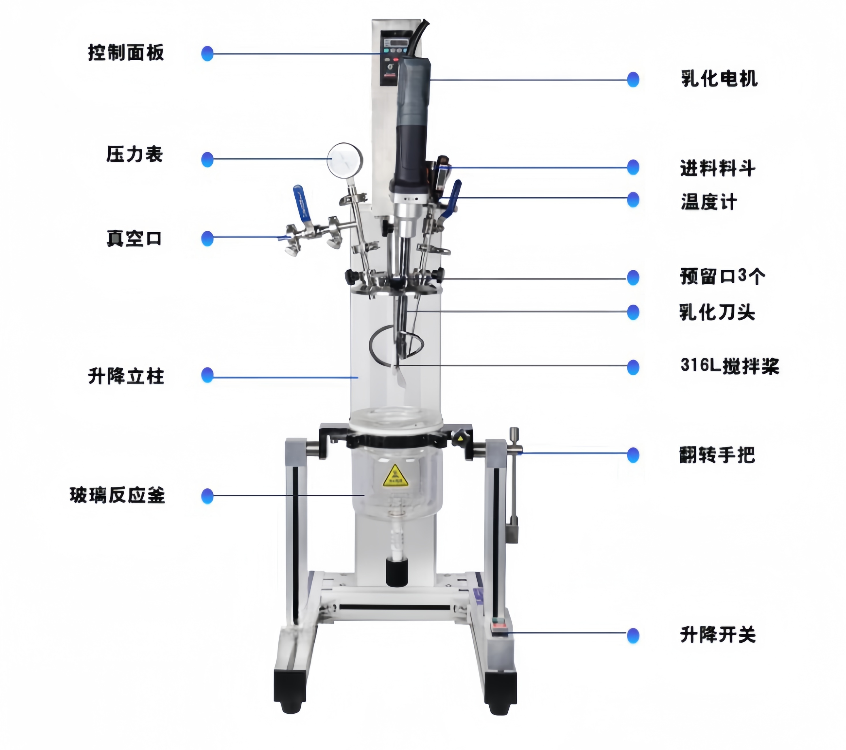 均質機口+料斗口+測溫口+真空口+3個功能口 |